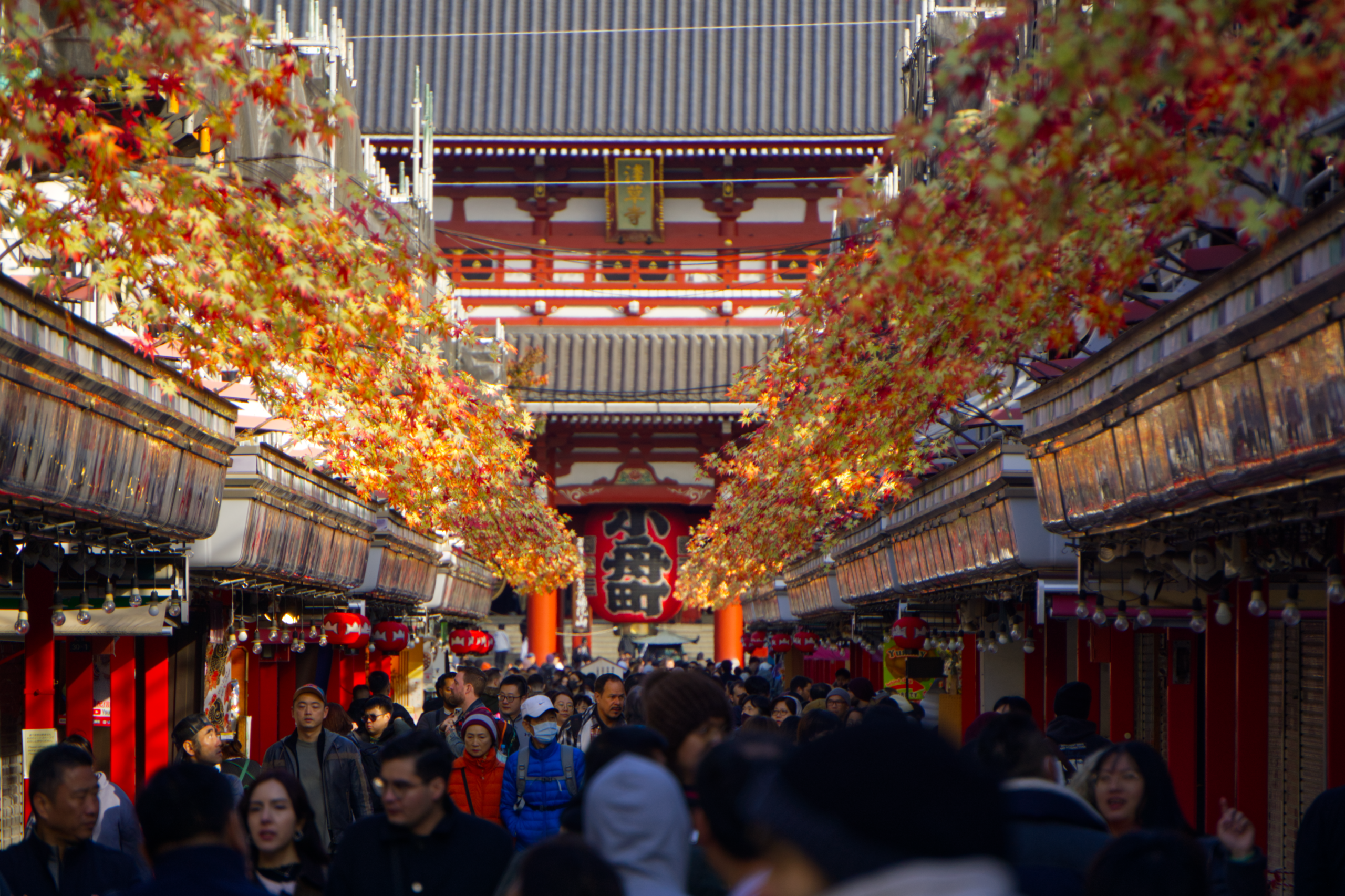Pour accéder au temple on remonte une grande allée commerçante (la Nakamise-dori) où on trouve beaucoup de boutiques de souvenirs. La plupart n’ont même pas encore ouvert.