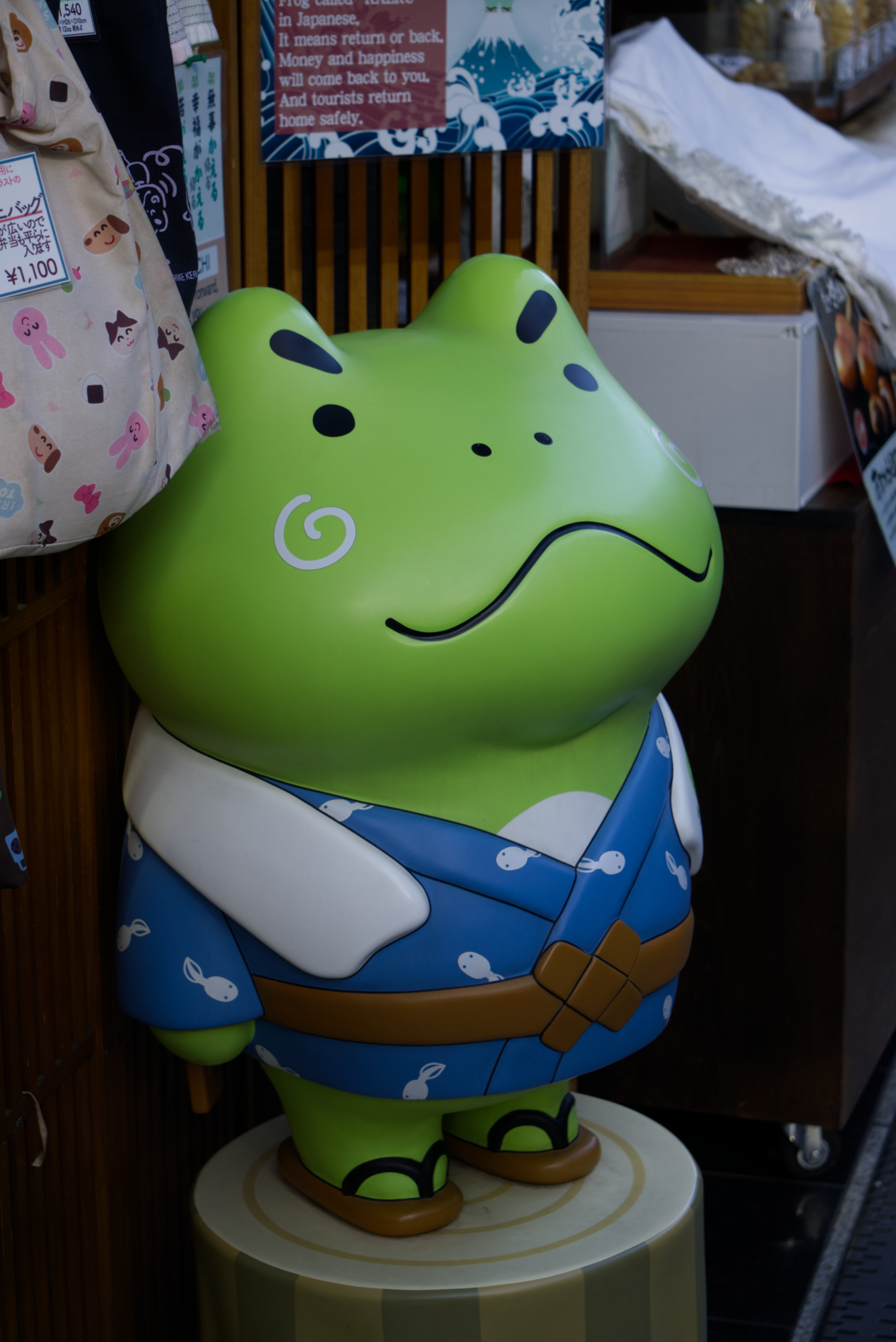 Sur la Kappabashi-dori, on trouve bien évidemment… un kappa ! C’est une petite créature aquatique mythologique japonaise (un yokai).