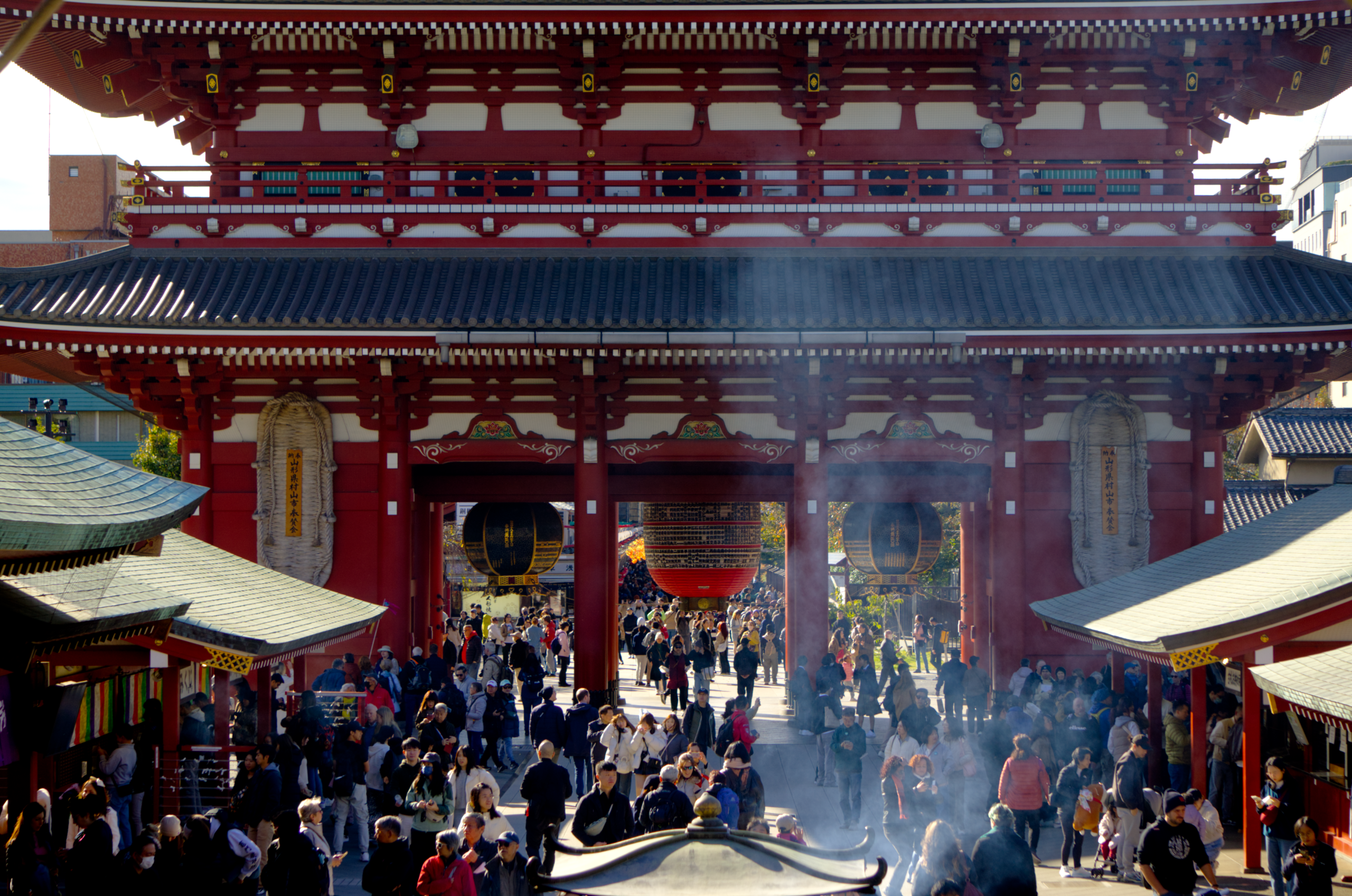 Nous arrivons devant la Kaminarimon (littéralement « la porte du tonnerre », la principale voie d’accès au Senso-ji. Il est 8h du matin mais il y a déjà beaucoup de monde. C’est une des attractions touristiques phares de Tokyo.