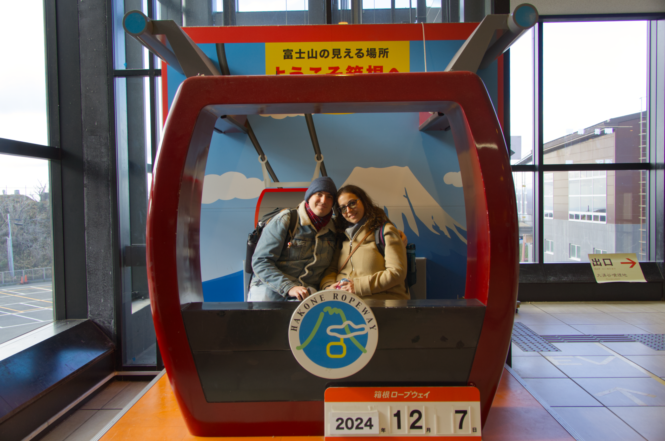 Le vent et le froid font que nous ne nous attardons pas. Nous reprenons le téléphérique puis le funiculaire direction l’autre côté de la vallée. Nous descendons à la gare de Gora, qui nous permettra de revenir à la gare de Hakone en train directement.